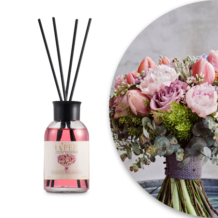 Dzięki Patyczkom Zapachowym Bukiet Kwiatów La’Per Twoje wnętrze nabierze nowego życia, a Ty będziesz cieszyć się ulubionym zapachem przez długi czas.