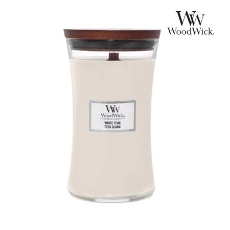 Duża Świeca WoodWick White Teak 610 g – świeca z drewnianym knotem